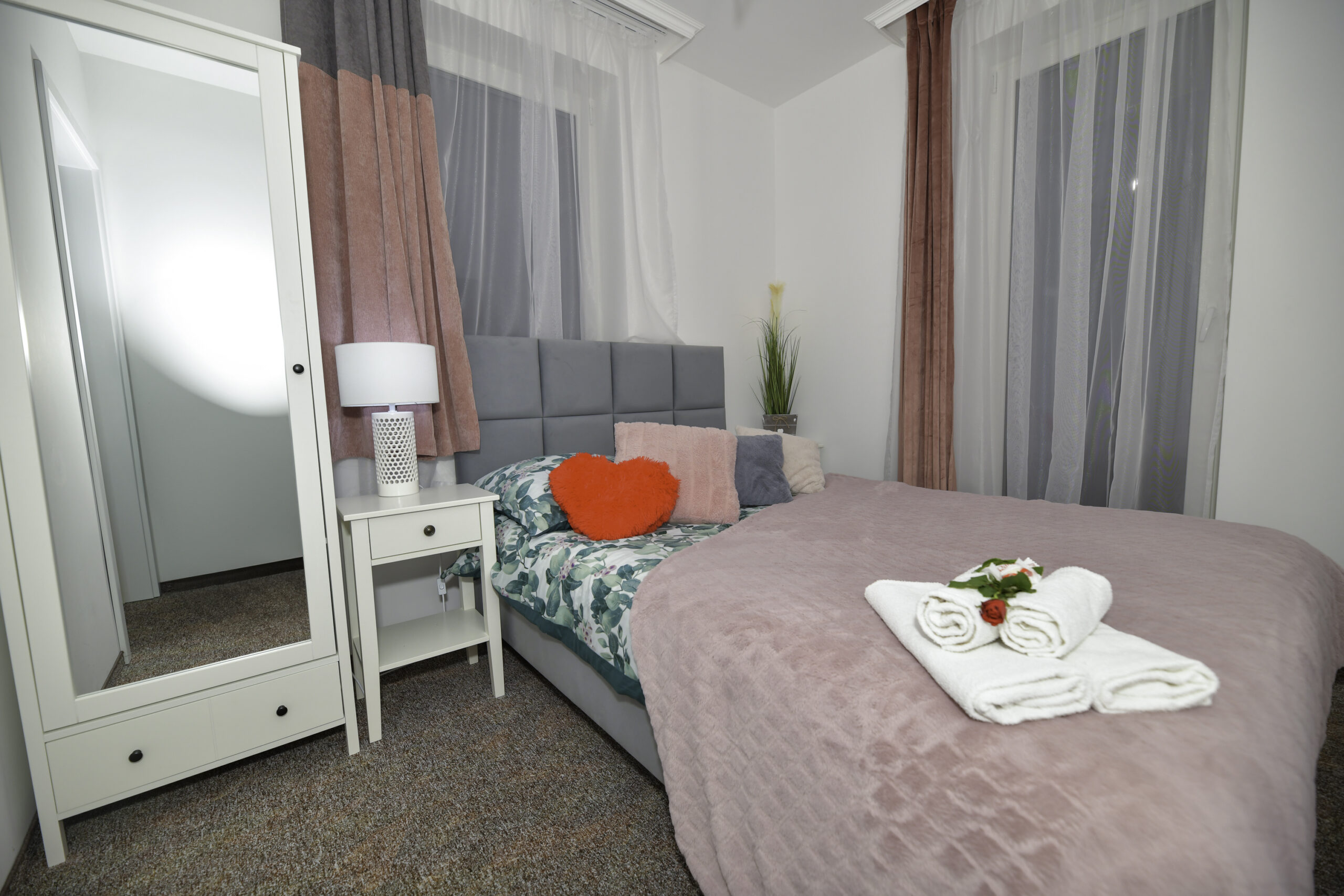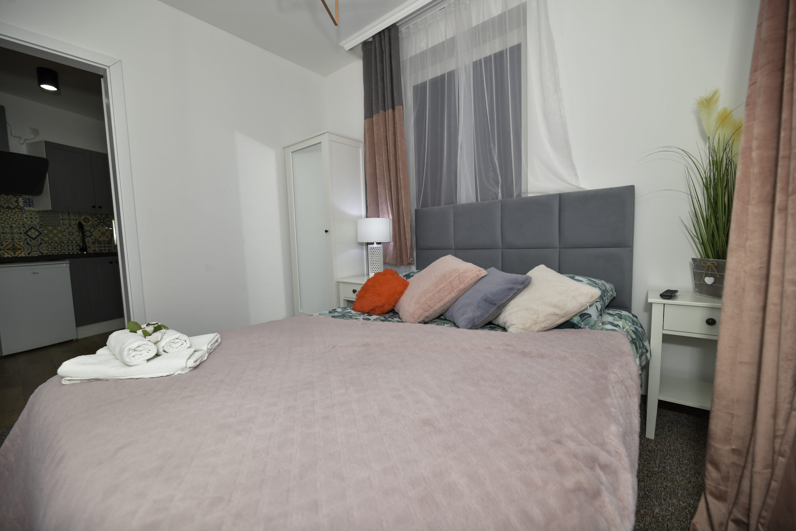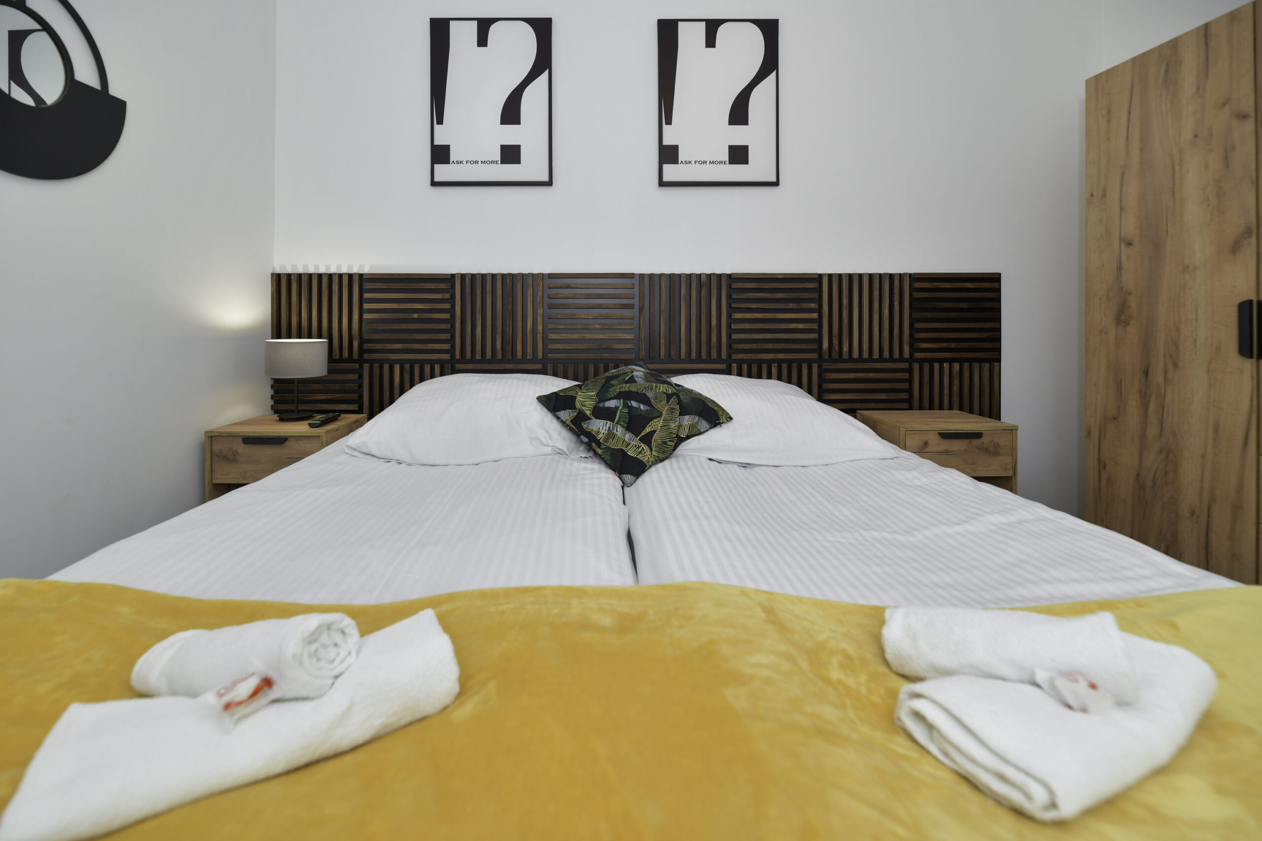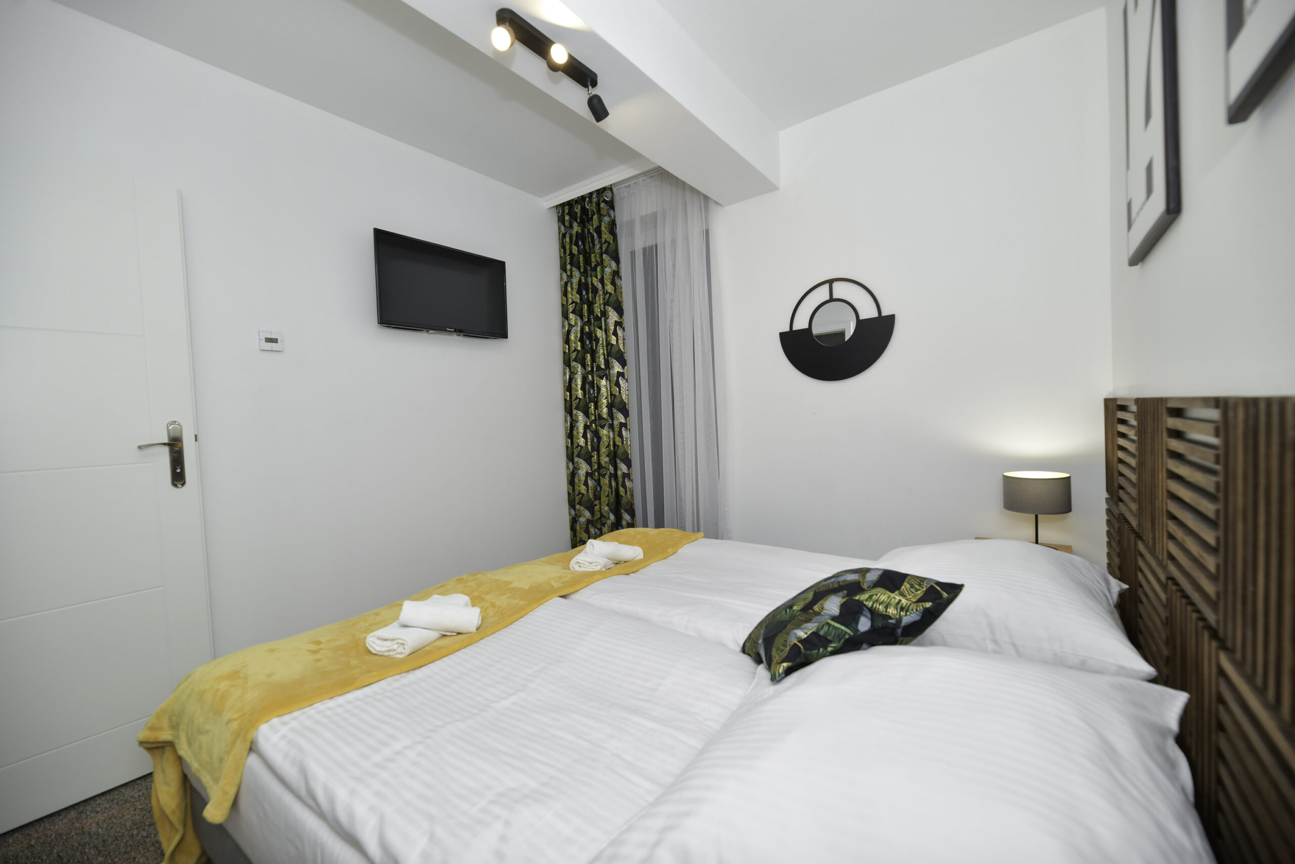 • Łóżka: 1 podwójne + 2 pojedyncze (z możliwością połączenia)