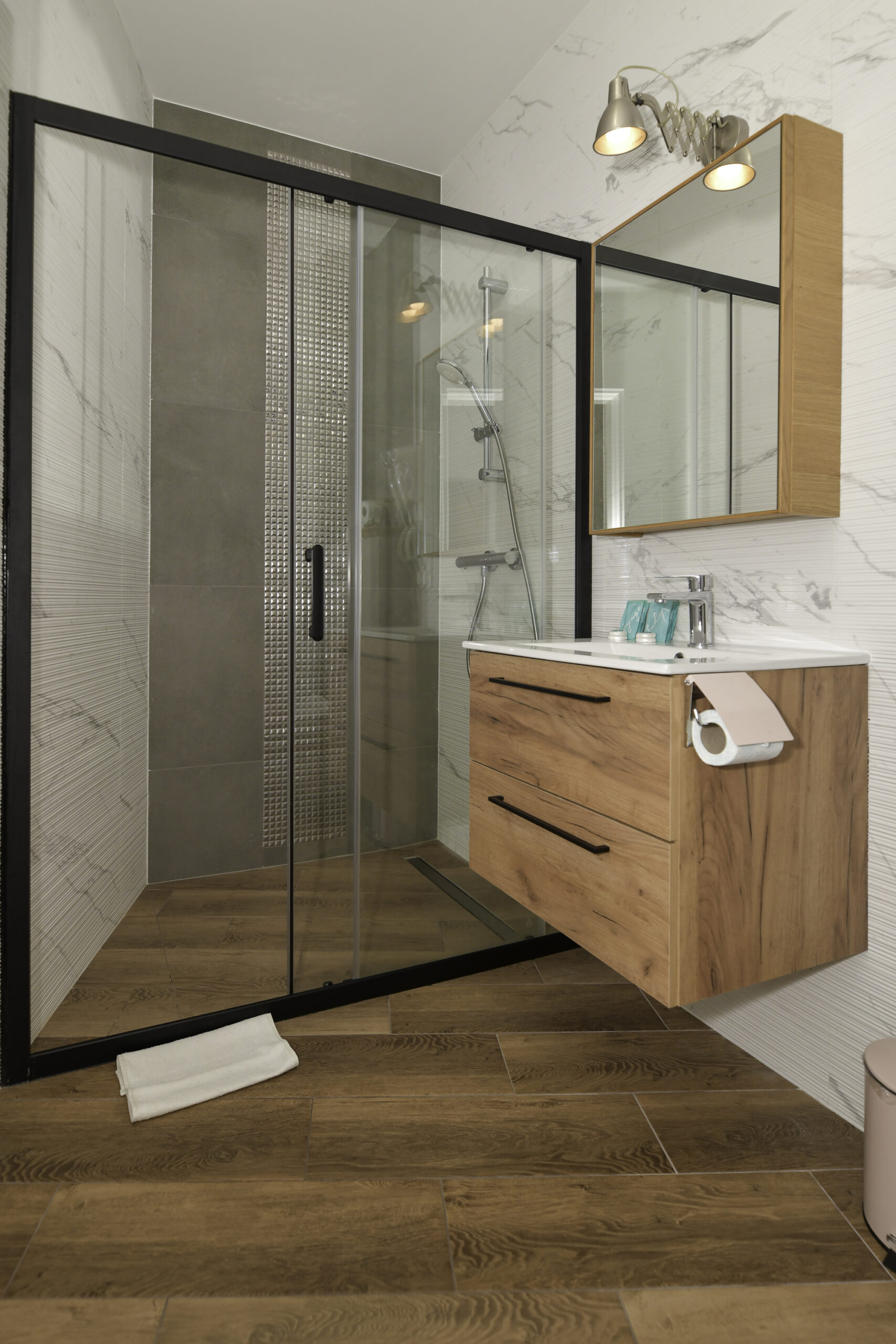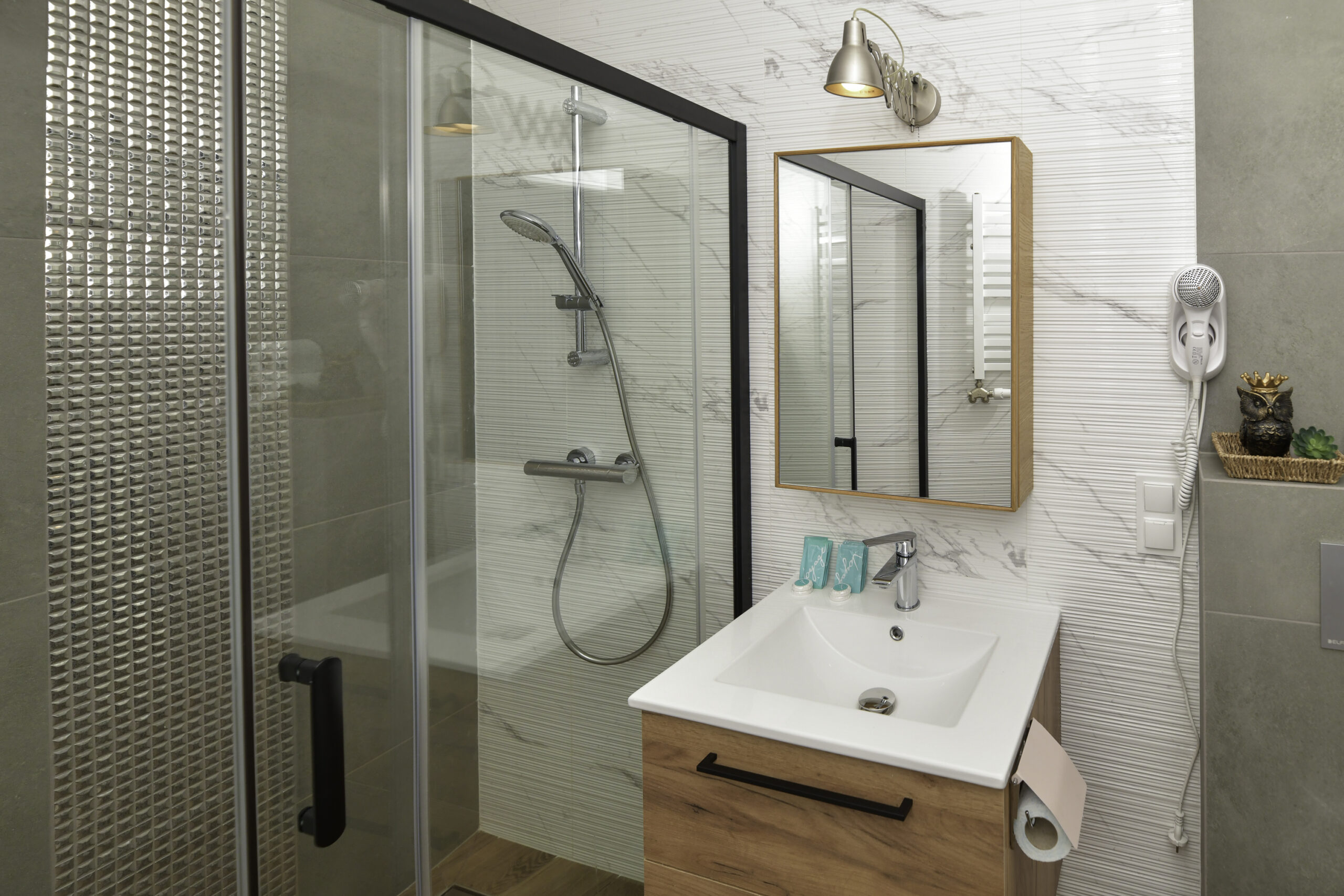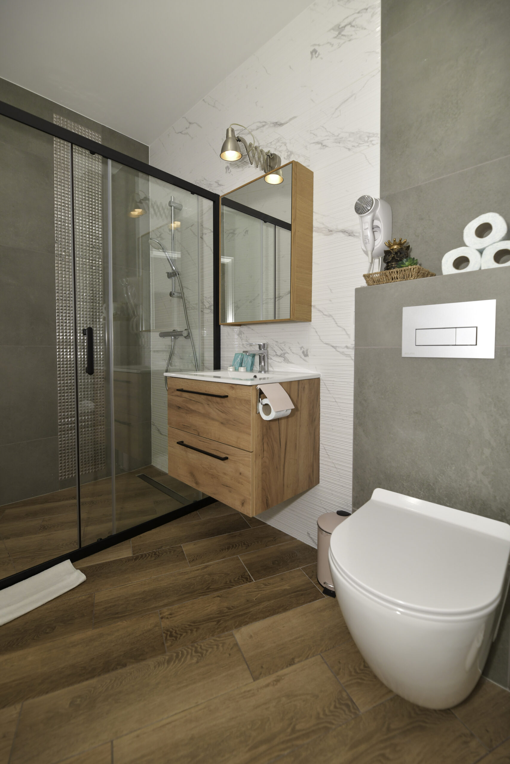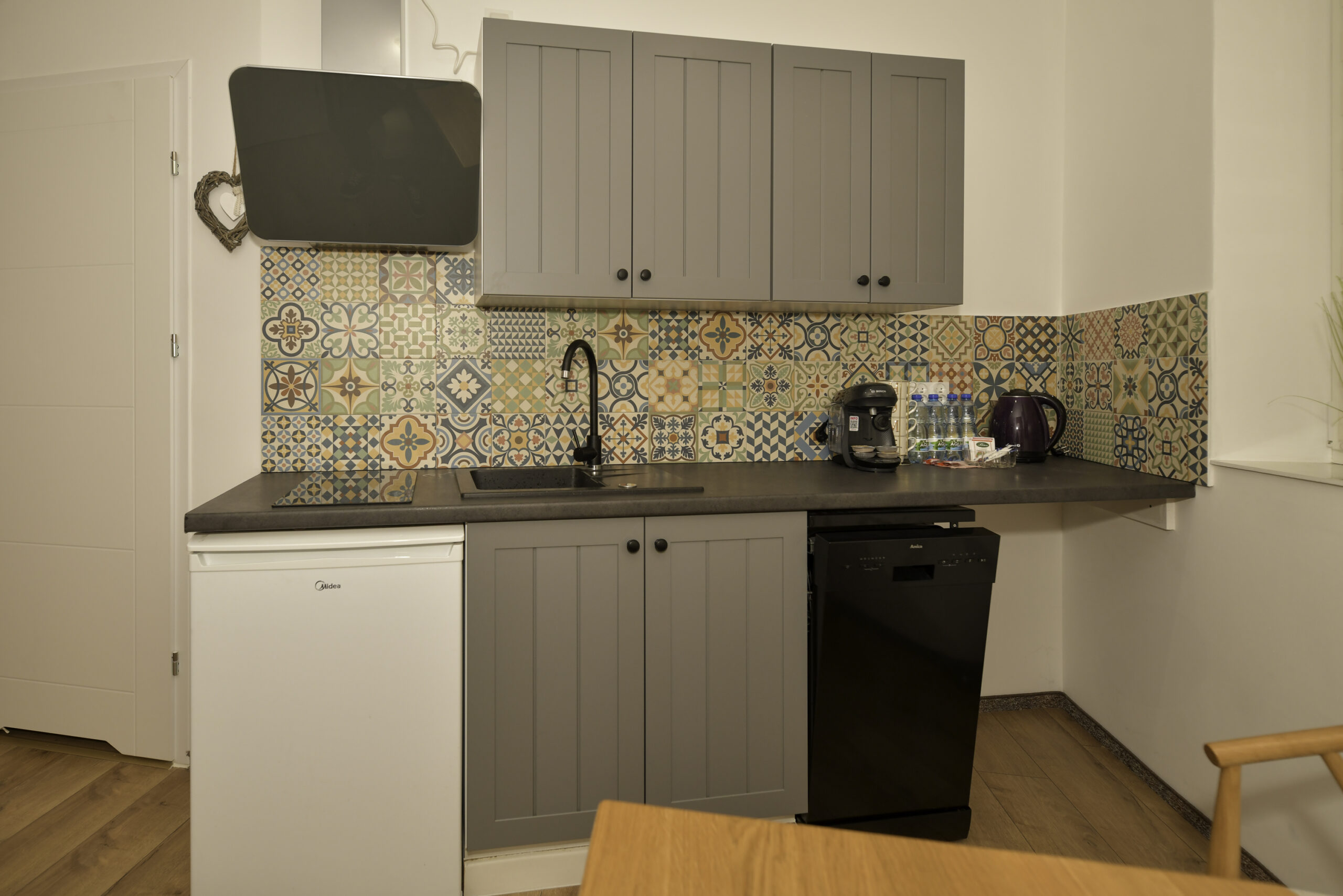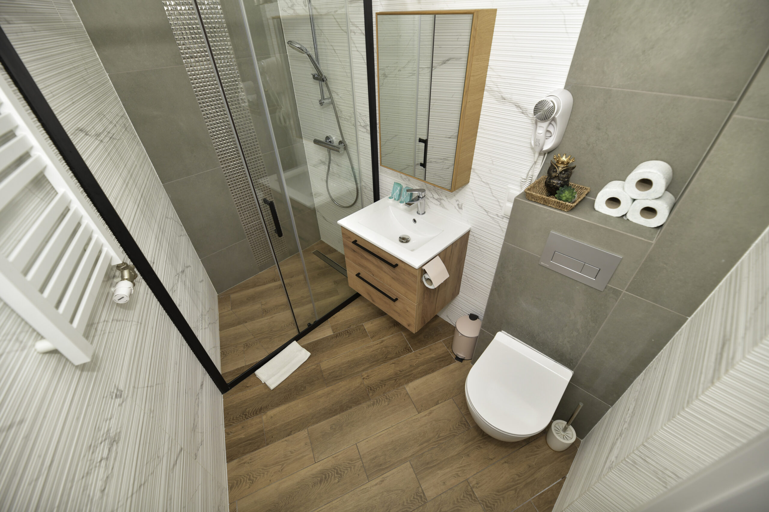 • Łóżka: 1 podwójne + 2 pojedyncze (z możliwością połączenia)